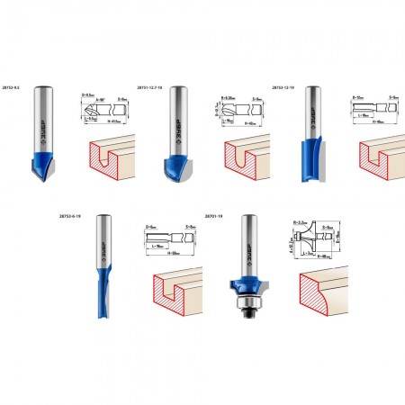 Набор фрез отлично подходит для профилирования кромок, изготовления декоративных пазов и рисунков, фрезерования канавок при работе с различными видами древесины.