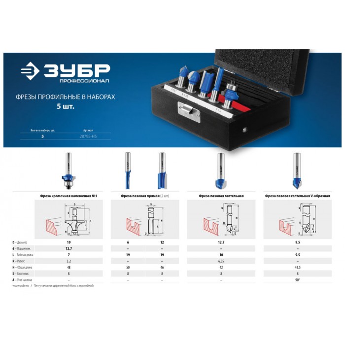 Набор профильных фрез по дереву 5 шт ЗУБР Профессионал 28795-H5
