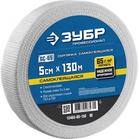 Сетка стеклотканевая самоклеящаяся 5 см?130 м 3?3 мм ЗУБР Профессионал 12465-05-130_z01