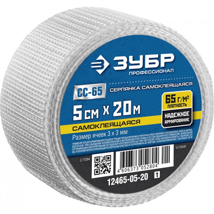 Сетка стеклотканевая самоклеящаяся 5 см?20 м 3?3 мм ЗУБР Профессионал 12465-05-20_z01