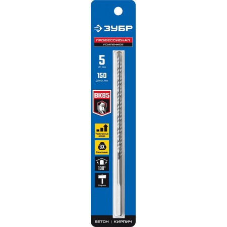 Сверло по бетону усиленное 5?150 мм трехгранный хвостовик ЗУБР Профессионал 2916-150-05_z01