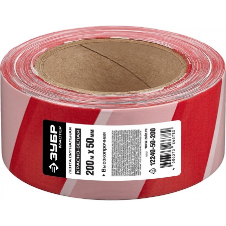 Лента сигнальная 50 мм, 200 м, красно-белая ЗУБР 12240-50-200