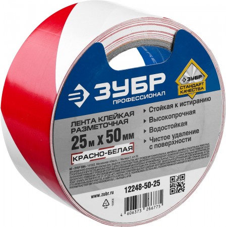 ЗУБР 50 мм, 25 м, красно-белая, разметочная клейкая лента, Профессионал (12248-50-25)