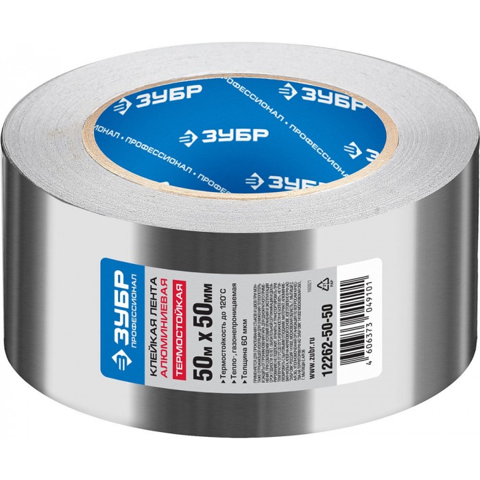 Лента алюминиевая самоклеящаяся 50 мм, 50 м, 60 гр/м2 ЗУБР Профессионал 12262-50-50