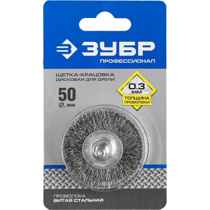 Щетка дисковая для дрели 50 мм, витая стальная проволока 0.3 мм ЗУБР Профессионал 35198-050_z02