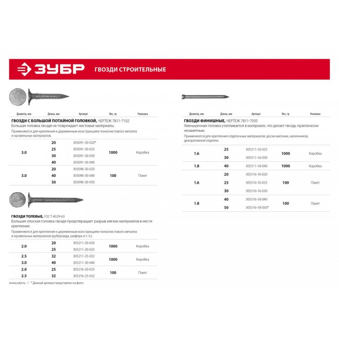 • Уменьшенная головка позволяет утопить финишный гвоздь в материале, благодаря чему он становится практически незаметен