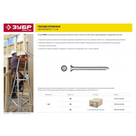 - Ершеная поверхность гвоздя обеспечивает повышенную прочность монтируемой конструкции