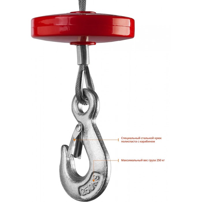 - Возможна работа в режиме с полиспастом. В этом режиме подъемный вес увеличивается в два раза