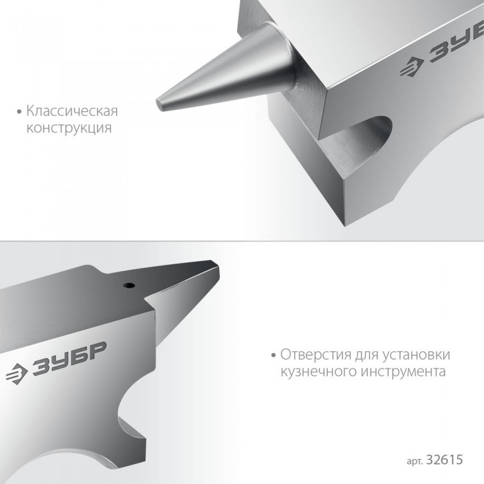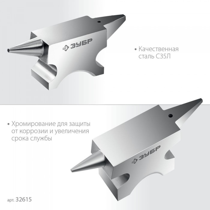 Стальная двурогая наковальня ЗУБР (шперак) для ювелирных работ и работы с проволокой . Антикоррозионное покрытие хромированием Сталь С35Л. Поверхность закалена на глубину 0,8-1,5 мм. Твердость рабочей части HB 340-477. Отверстия Ø3-4 мм для установки инструмента. Увеличенный срок службы. Для точных работ. Серия Профессионал У настольной версии предусмотрены отверстия для жеской фиксации на столе.