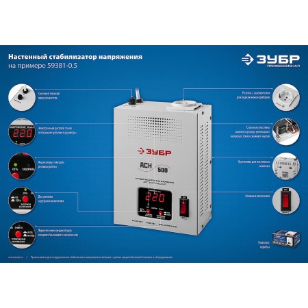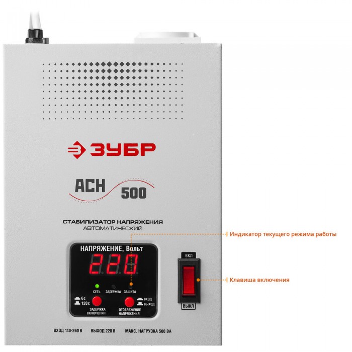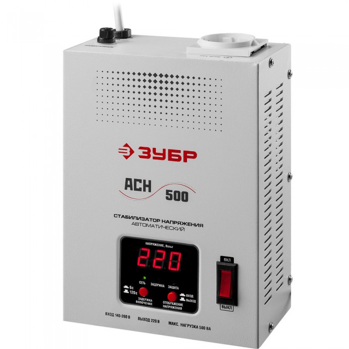 Стабилизатор напряжения ЗУБР предназначен для точного и быстрого выравнивания сетевого напряжения для защиты бытовой техники и оборудования. Устройство обеспечивает эффективную защиту электроприборов от нестабильного по значению напряжения в сети. Релейный тип стабилизации является одним из наиболее надежных. Светодиодная индикация и цифровой дисплей позволяют контролировать состояние устройства и величину выходного напряжения.
