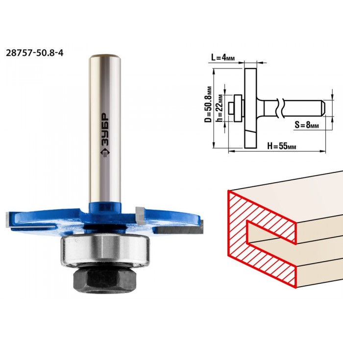 Фреза горизонтально-пазовая 50.8 x 4 мм, хвостовик 8 мм ЗУБР Профессионал 28757-50.8-4