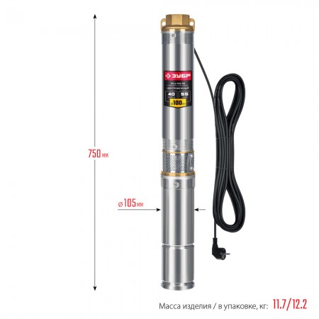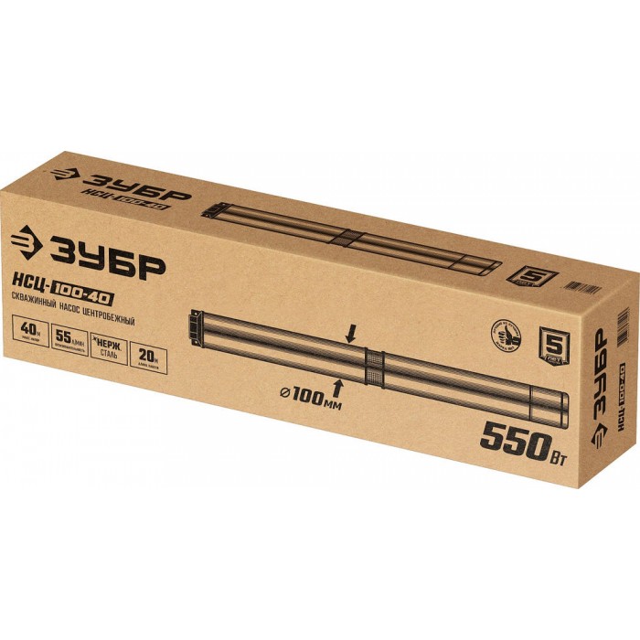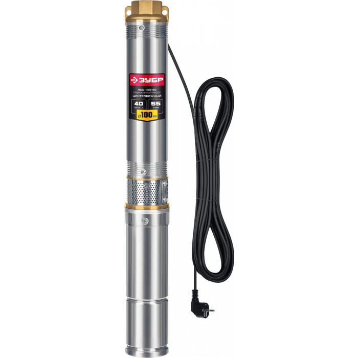 Насос скважинный центробежный 550 Вт, 40 м напор, корпус из нержавеющей стали ЗУБР НСЦ-100-40