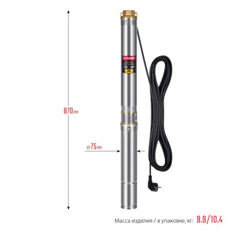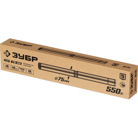 Насос скважинный центробежный 550 Вт, 40 м напор, корпус из нержавеющей стали ЗУБР НСЦ-75-40
