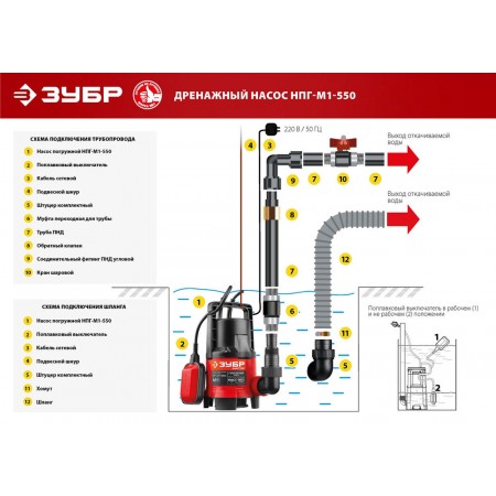 Насос дренажный для грязной воды 550 Вт ЗУБР НПГ-М1-550