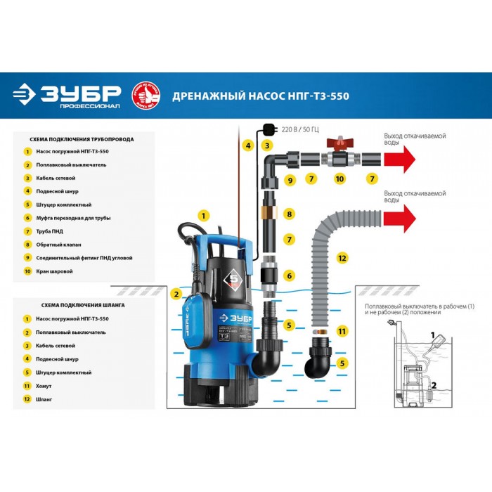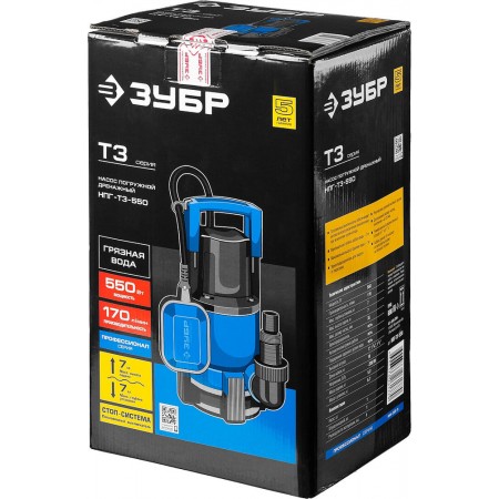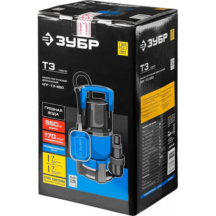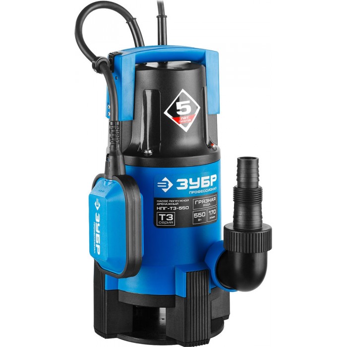 Насос дренажный для грязной воды 550 Вт ЗУБР Профессионал НПГ-Т3-550