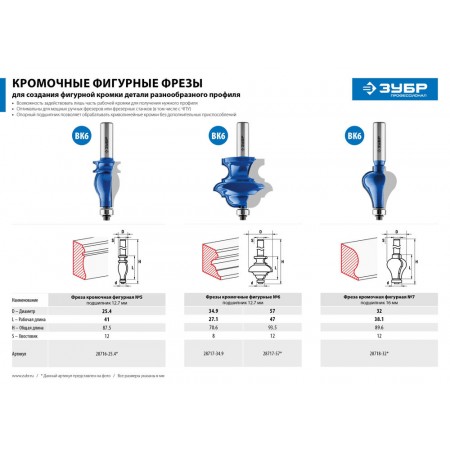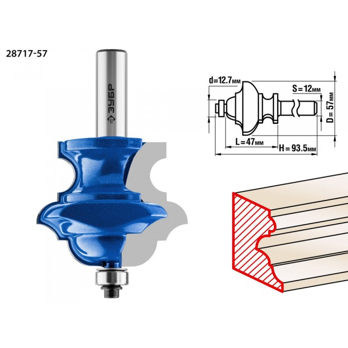 Фреза кромочная фигурная №6 57 x 47.6 мм, радиус 12.7 мм, хвостовик 12 мм ЗУБР Профессионал 28717-57