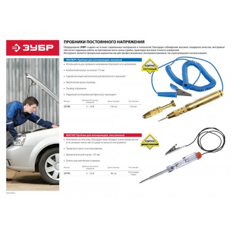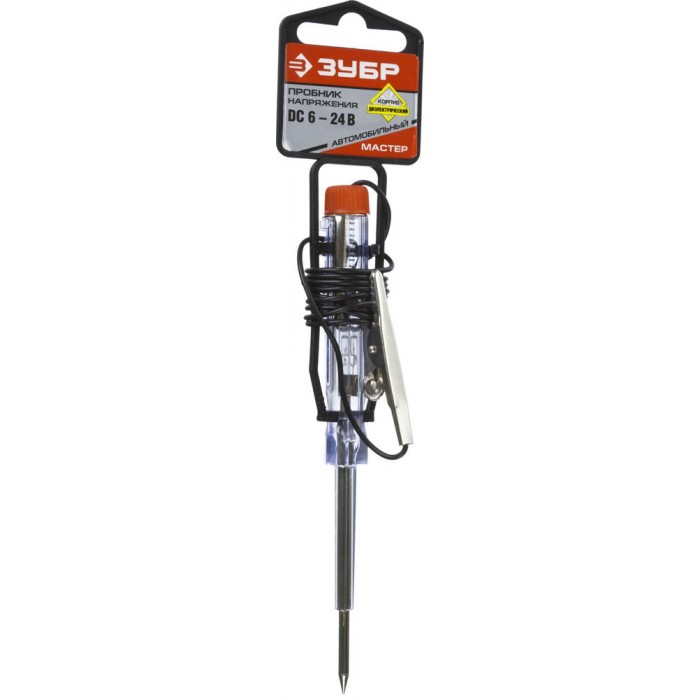 Пробник электрический для автопроводки 6 - 24 В, пластик, клипса, на подвеске, провод 86 см ЗУБР 25745