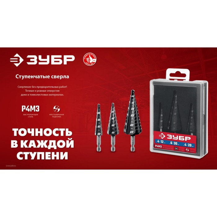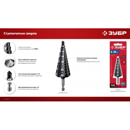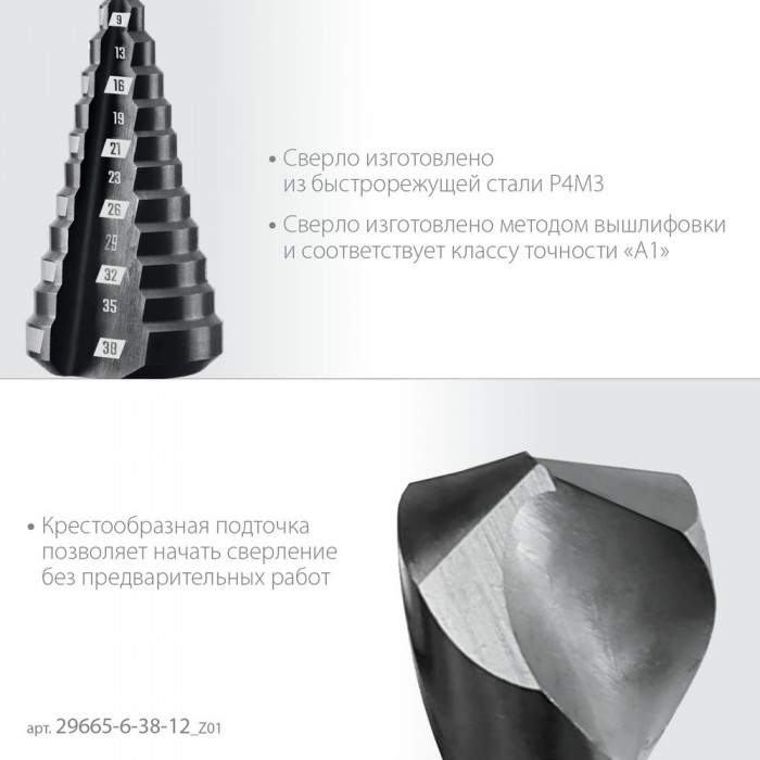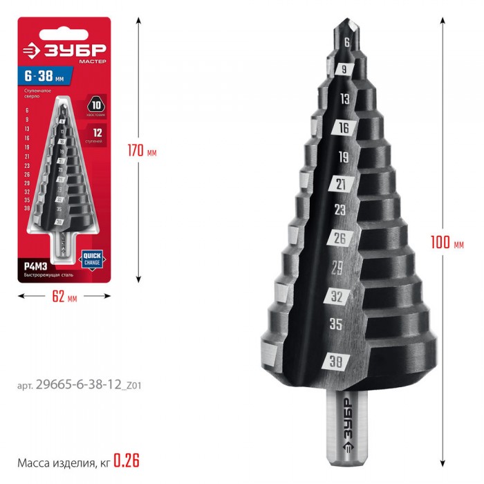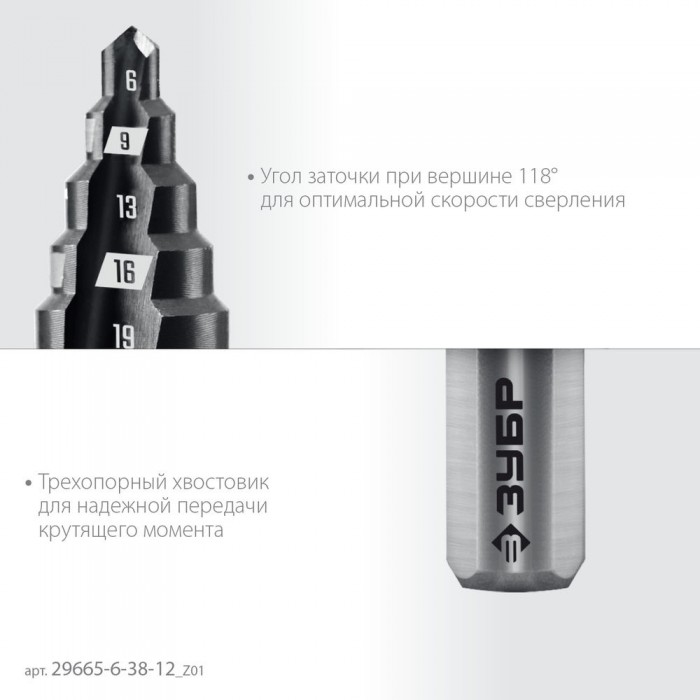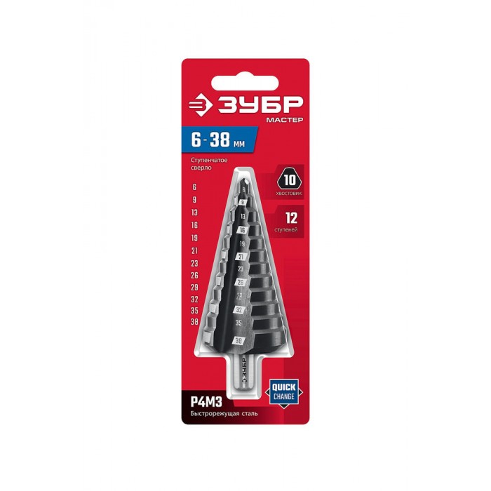 Сверло ступенчатое 6-38 мм, 12 ступеней ЗУБР 29665-6-38-12_z01