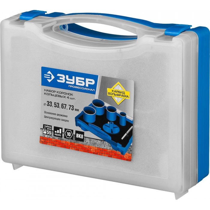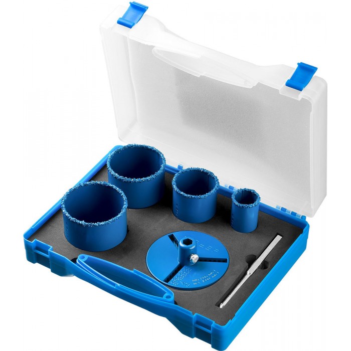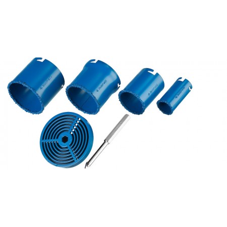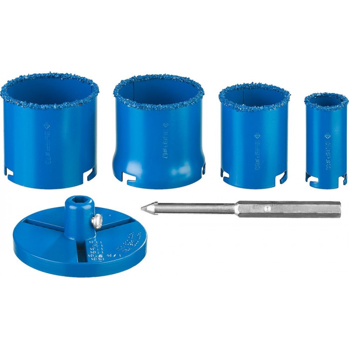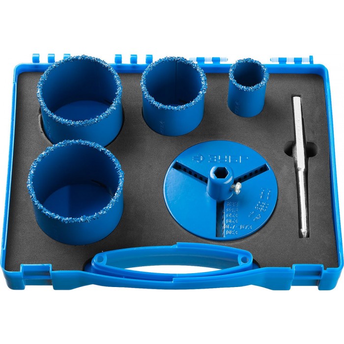 Набор применяется для получения ровных отверстий в облицовочных материалах, а также в ячеистом бетоне, кирпиче и гипсокартоне. Используется на дрелях и легких перфораторах в режиме безударного сверления.