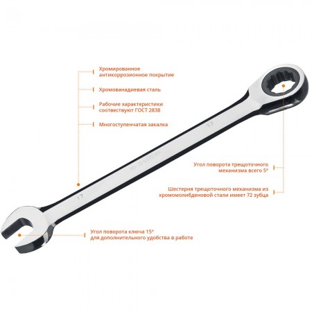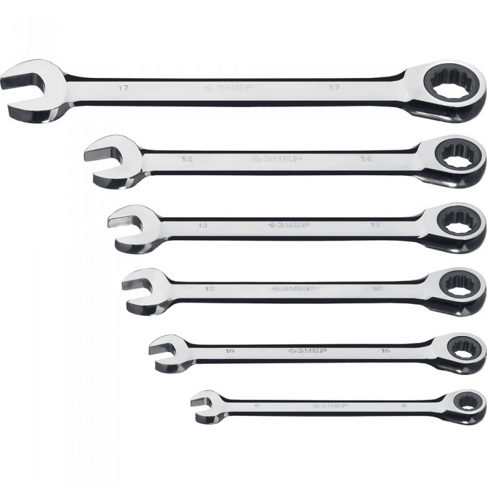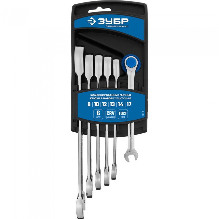 Набор ключей гаечных комбинированных трещоточных 6 шт 8-17 мм Профессионал ЗУБР 27074-H6
