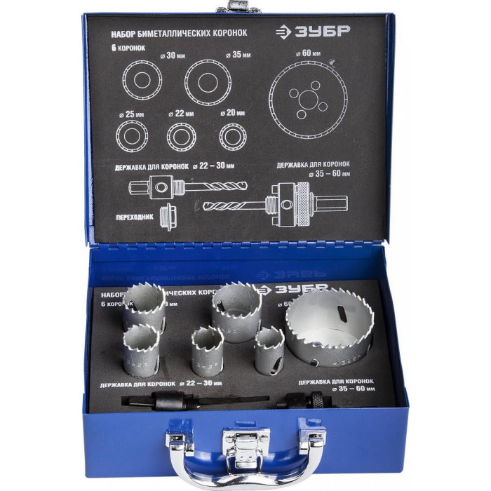 Набор коронок биметаллических 6 шт сталь Р6М5 20,22,25,30,35,60 ЗУБР 29531-H6-1