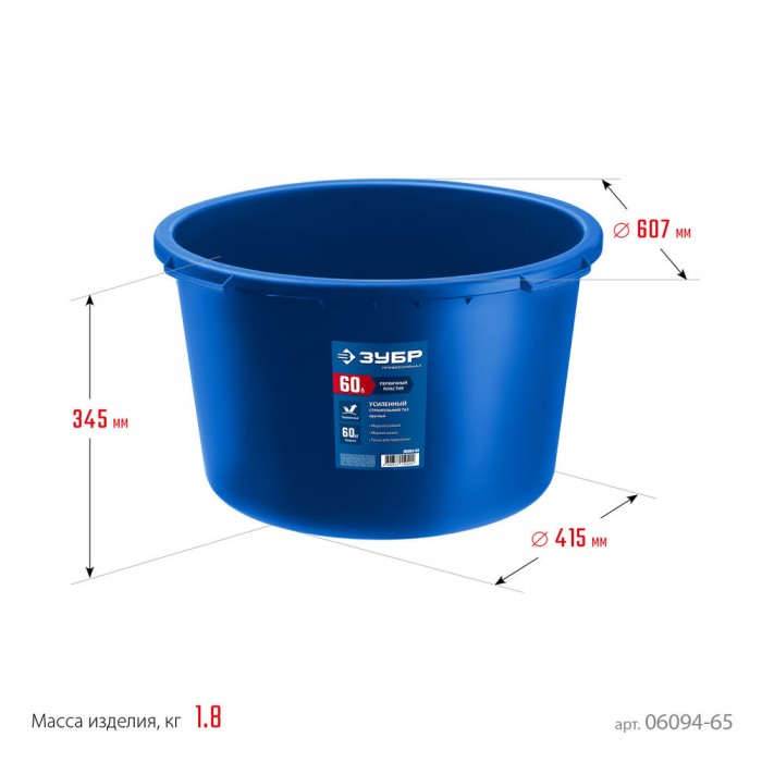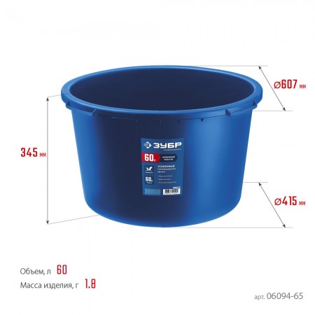 Таз строительный круглый 60 л, первичный высокопрочный пластик, усиленный ЗУБР 06094-65