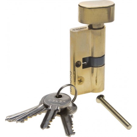 Механизм цилиндровый 60 мм, цвет латунь, 5-PIN, тип ключ-защелка ЗУБР 52103-60-1