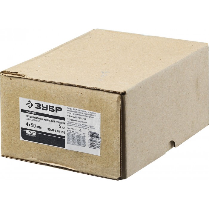 Гвозди ершеные с конической головкой 60 x 4 мм, цинк, 5 кг ЗУБР 305160-40-060