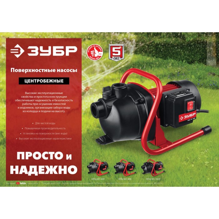 Насос центробежный поверхностный (садовый) 600 Вт ЗУБР НПЦ-М1-600