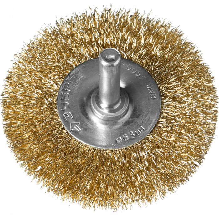 Щетка дисковая для дрели 63 мм, витая стальная латунированная проволока 0.3 мм ЗУБР Профессионал 3520-063_z02