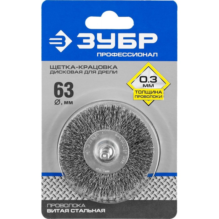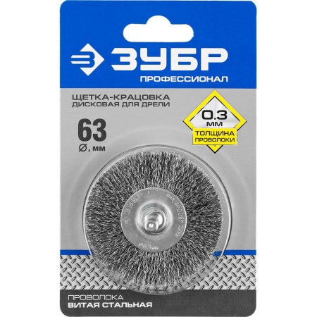 Щетка дисковая для дрели 63 мм, витая стальная проволока 0.3 мм ЗУБР Профессионал 35198-063_z02