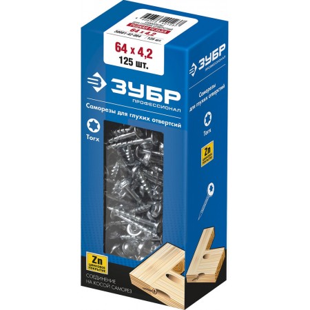 Саморез для глухих отверстий 64 х 4.2 мм, редкая резьба, ТХ20, цинк, 125 шт ЗУБР Профессионал 30081-42-064