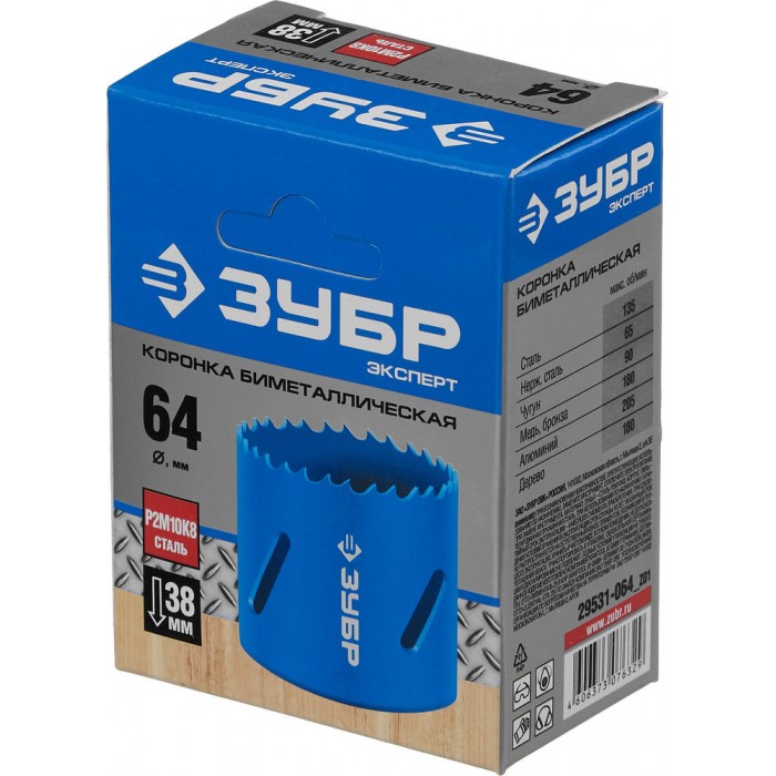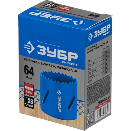 Коронка биметаллическая 64 мм, сталь Р6М5 ЗУБР 29531-064_z01