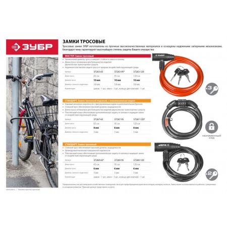 Замок навесной тросовый предназначен как для запирания хозяйственных помещений, так и для предотвращения краж велосипедов, мопедов, колясок и др. Замок может использоваться в районах с умеренным и холодным климатом.