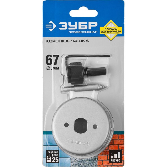 Коронка-чашка с державкой и сверлом 67 мм, L 25 мм, карбид вольфрама ЗУБР Профессионал 33360-067_z01