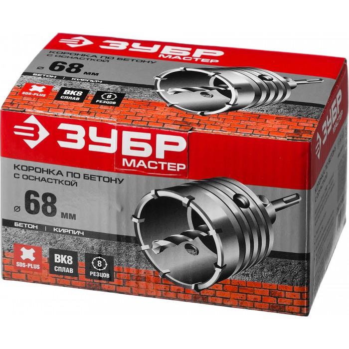 Коронка по бетону с оснасткой 68 мм, SDS-Plus, 8Т ЗУБР 29211-68