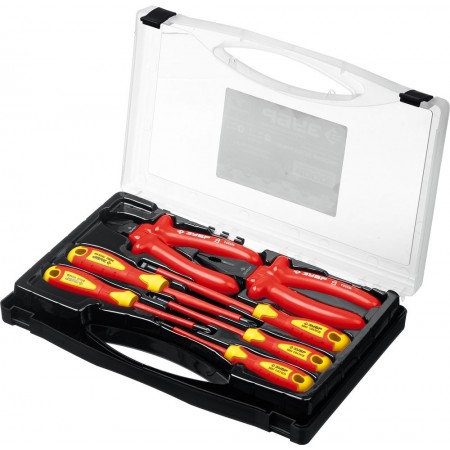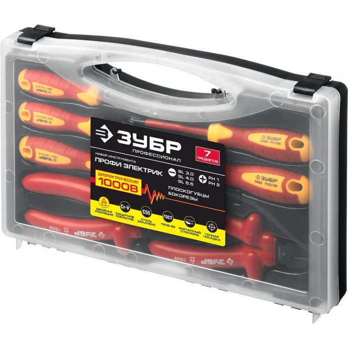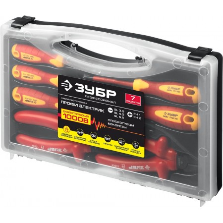 Профессиональный набор инструментов включает в себя наиболее необходимые инструменты, предназначеные для работ под напряжением до 1000 В и захвата и удерживания мелких предметов, перекусывания проволоки средней твердости и других слесарных и монтажных работах.