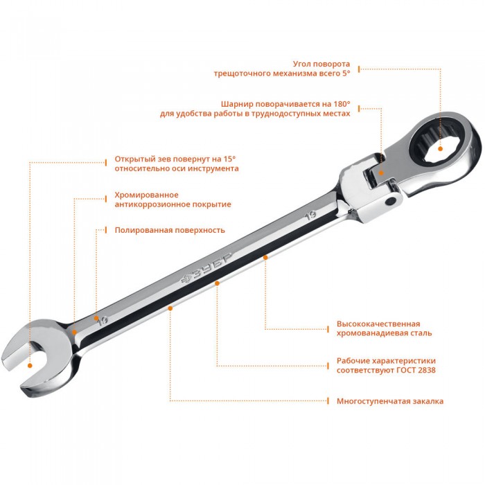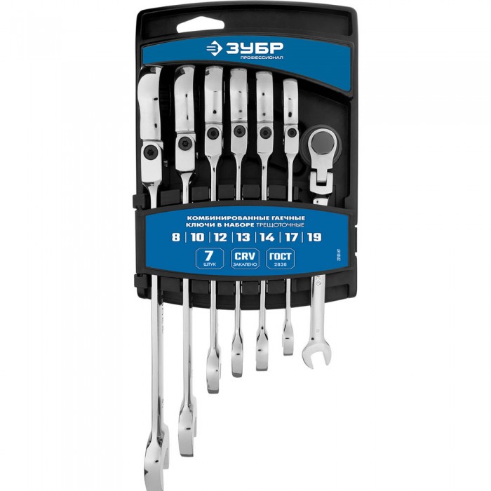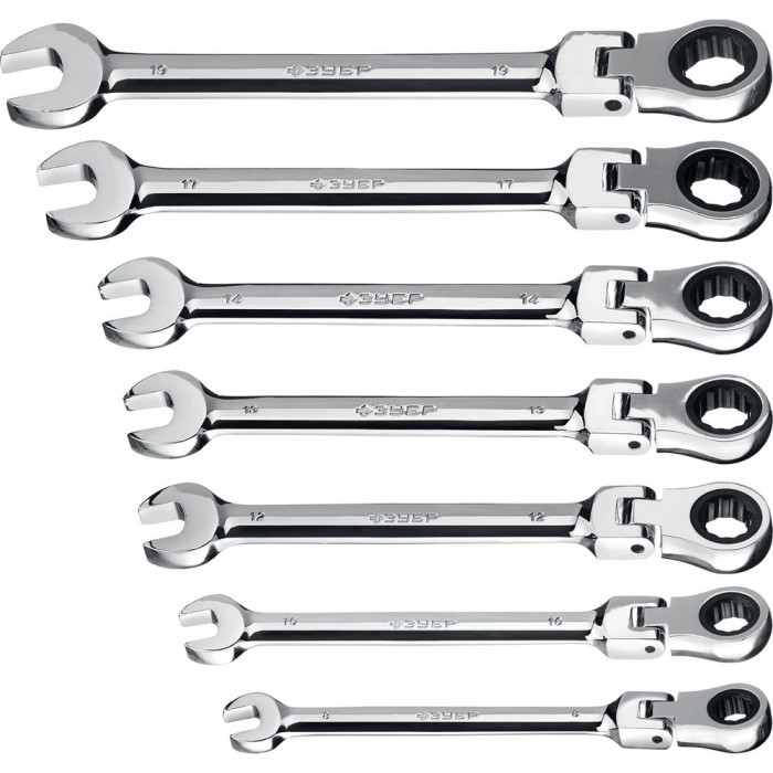 Набор ключей гаечных шарнирных трещоточных 7 шт 8-19 мм Профессионал ЗУБР 27101-H7