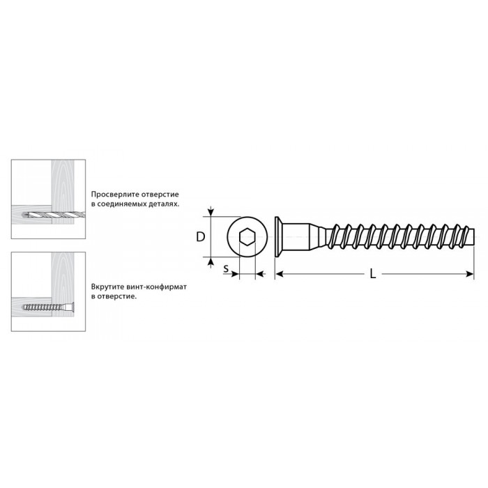 Для соединения различных элементов из дерева, а также фанеры, ДСП, МДФ в мебельном производстве. Устанавливается в предварительно просверленное отверстие, соответствующее диаметру по резьбе.