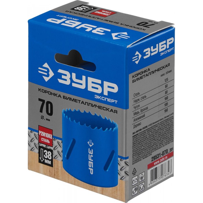 Коронка биметаллическая 70 мм, сталь Р6М5 ЗУБР 29531-070_z01
