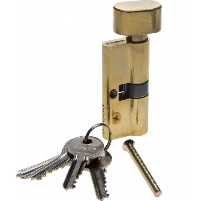 Механизм цилиндровый 70 мм, цвет латунь, 5-PIN, тип ключ-защелка ЗУБР 52103-70-1