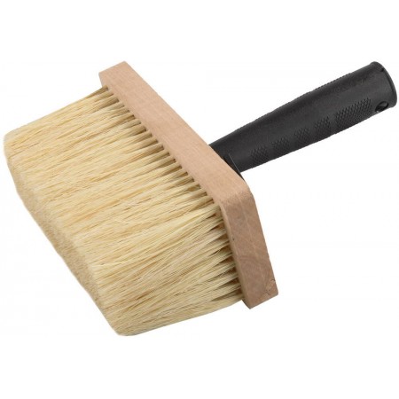Щетина из натурального растительного волокна отлично подходит для работы со всеми типами ЛКМ, битумными смесями, грунтовками, побелками на больших поверхностях, клеевыми составовами, для размывки потолков. Щетина кисти надежно закреплена в пластмассовой основе, а наличие удобной пластмассовой рукоятки обеспечит комфортную работу