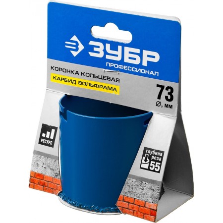 Коронка кольцевая 73 мм, L 55 мм, карбид вольфрама ЗУБР Профессионал 33350-73_z01