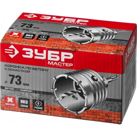 Коронка по бетону с оснасткой 73 мм, SDS-Plus, 9Т ЗУБР 29211-73