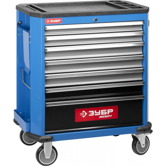 Профессиональная тележка ЗУБР позволит Вам комфортно организовать рабочее место с легким доступом ко всем инструментам. При необходимости Вы можете транспортировать его, а так же использовать ключи для безопасности