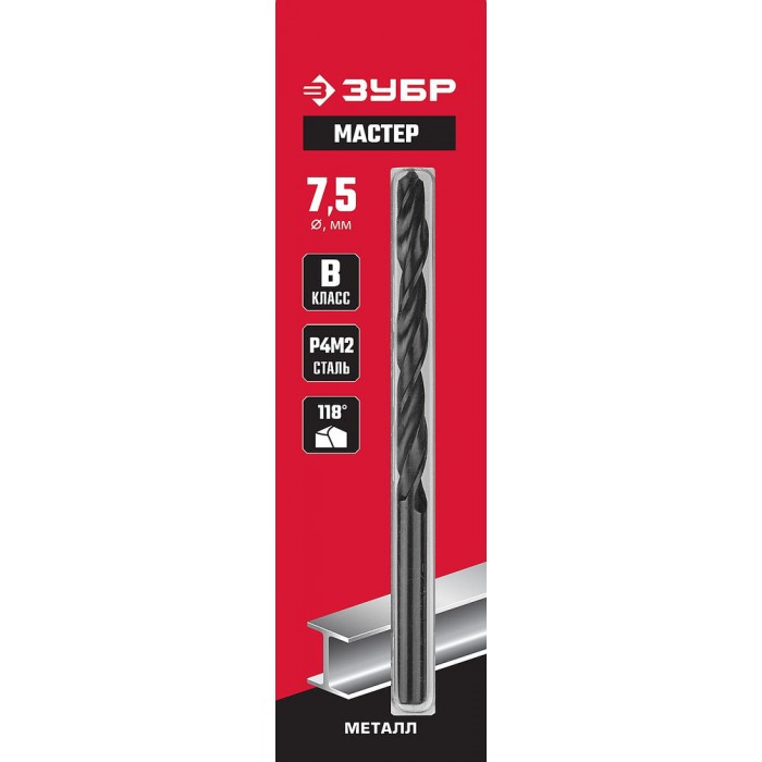 Сверло по металлу 7.5 х 109 мм, сталь Р4М2, класс В ЗУБР 29605-7.5