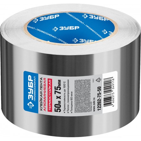Лента алюминиевая самоклеящаяся 75 мм, 50 м, 60 гр/м2 ЗУБР Профессионал 12262-75-50
