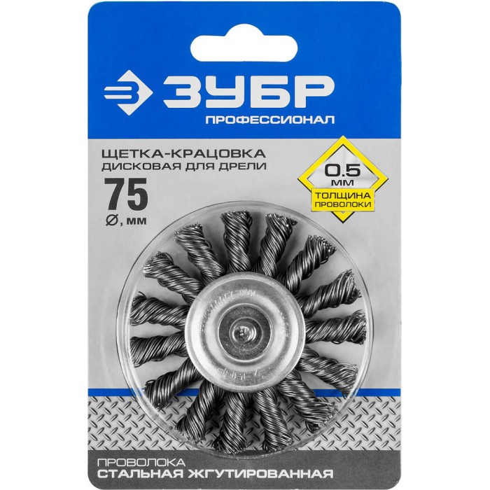 Щетка дисковая для дрели 75 мм, жгутированная стальная проволока 0.5 мм ЗУБР Профессионал 3522-075_z02