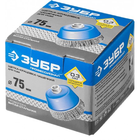 Щетка-крацовка чашечная для УШМ 75 мм, витая стальная проволока 0.3 мм ЗУБР Профессионал 35261-075_z02