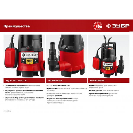 Автоматическое включение и выключение, термопредохранитель для защиты двигателя, высокие эксплуатационные свойства и простая конструкция обеспечивают надёжное и безопасное применение для перекачивания чистой и загрязнённой воды на садовых участках, при осушении ёмкостей и водоёмов, организации забора воды с глубины (колодцы, скважины) и подачи на высоту, использовании в системах аэрации и дренажа.